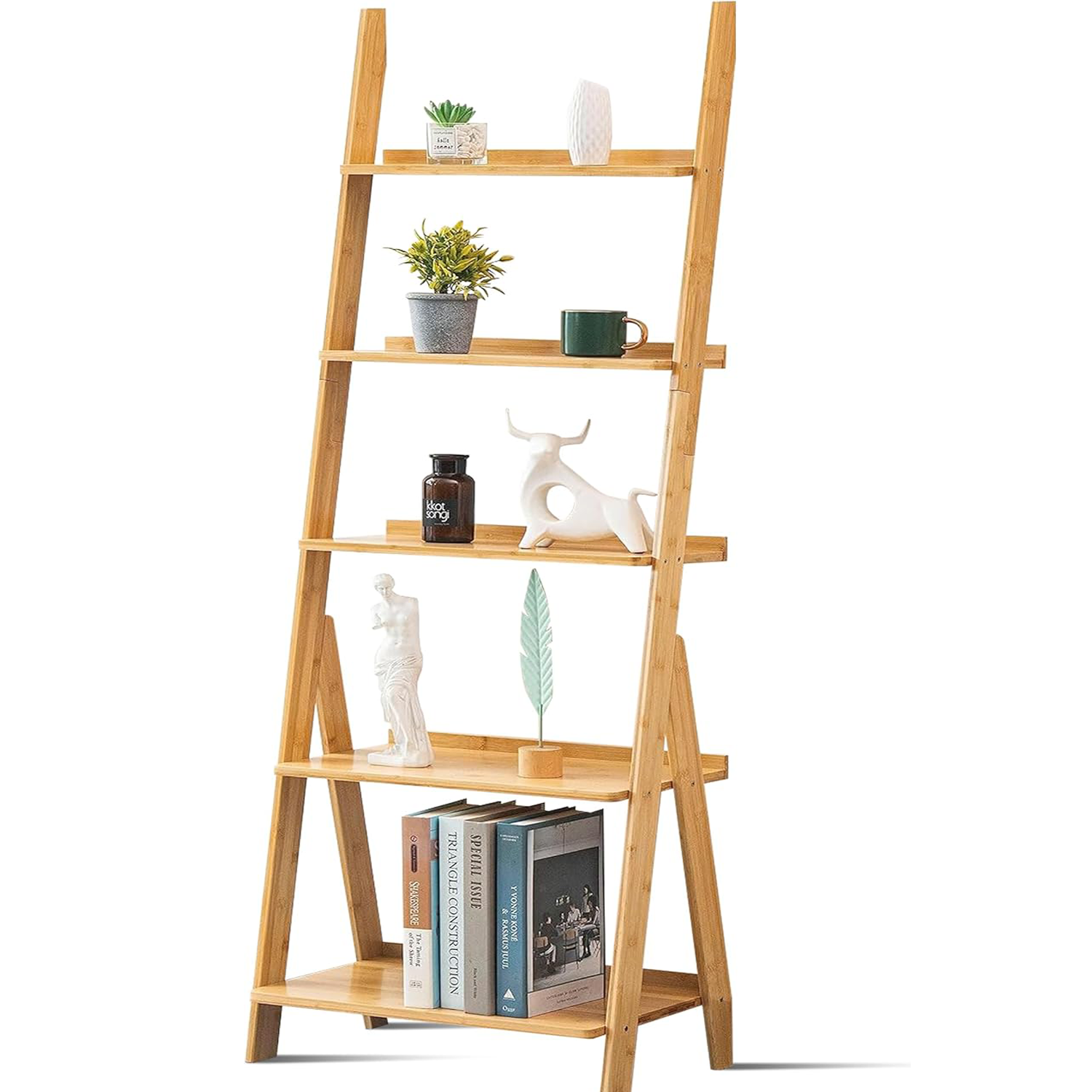 Bamboo Ladder Shelf Ladder Bookshelf-Natural