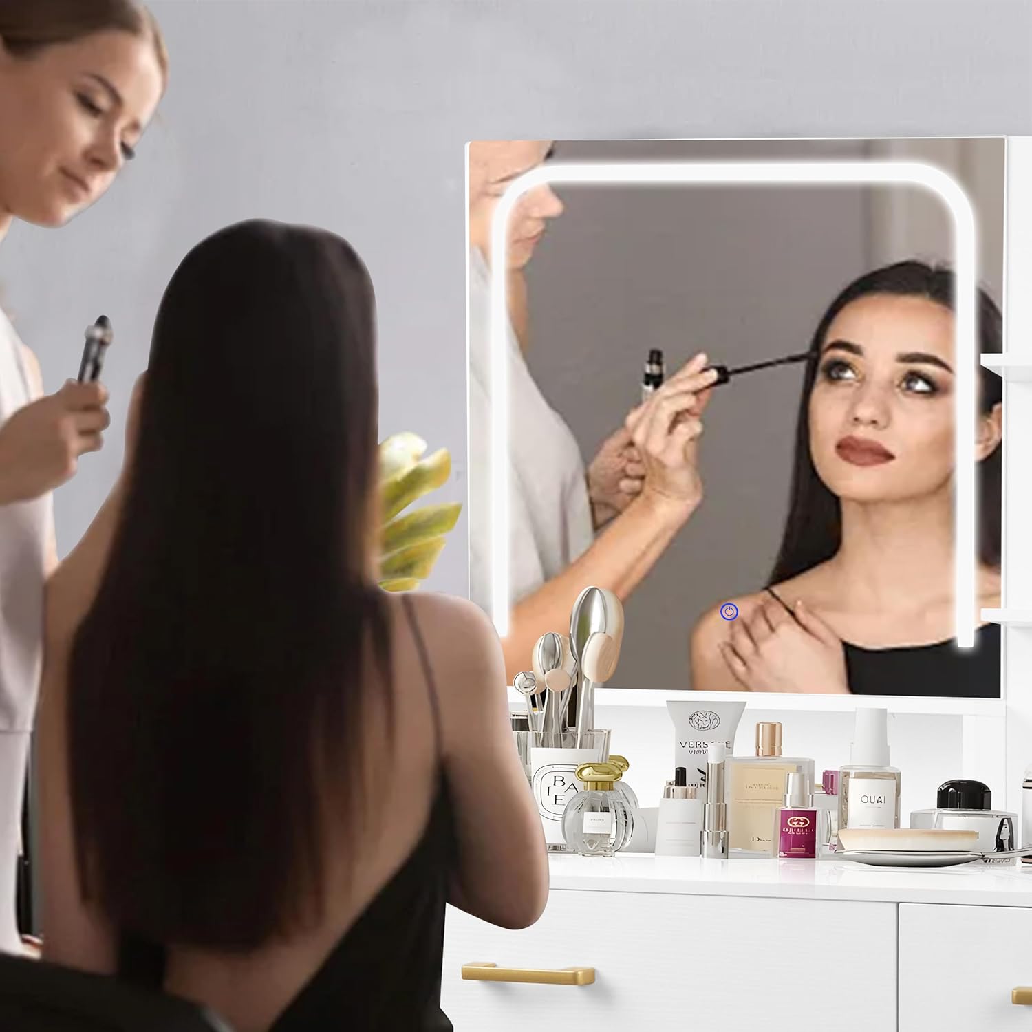 - đ©±ăTimeless & Elegant DesignăOur makeup vanity with lighted mirror boasts a classic white tabletop and an alluring vintage gold frame, creating a timeless and elegant look. It seamlessly complements your existing furniture, making it a perfect addition to your bedroom and dressing room. Additionally, it serves as an excellent choice for salons, spas, and photography studios, adding a touch of sophistication to any space.
