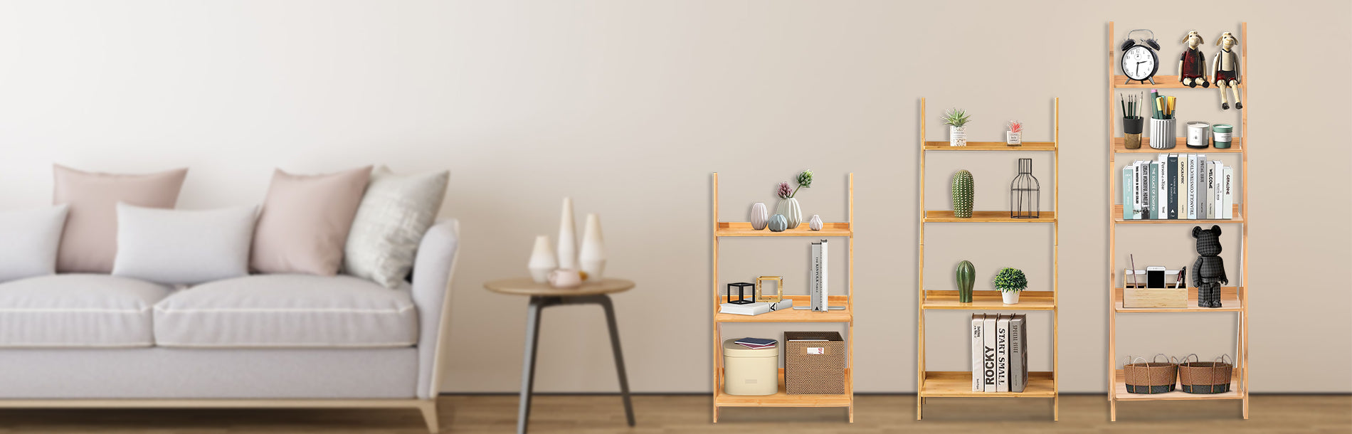 Bamboo Ladder Shelf Ladder Bookshelf-Natural