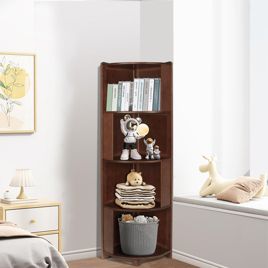 4 Tier Bamboo Corner Shelf, Modern Corner Bookshelf, 56.2" Tall Stylish Book Case Display Rack Plant Stand for Living Room, Bedroom, Home Office, Kitchen, Walnut