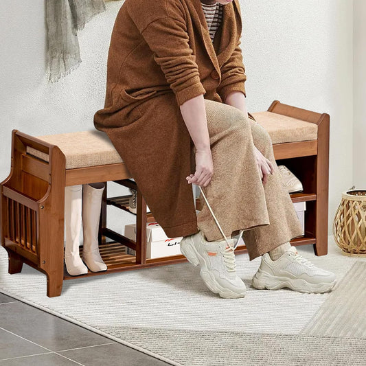 Shoe Storage Bench for Entryway, Bamboo Entryway Bench with Hidden Drawer and Side Brackets,2-Tier Shoe Rack Organizer for Entryway, Hallway,Bedroom and Bathroom