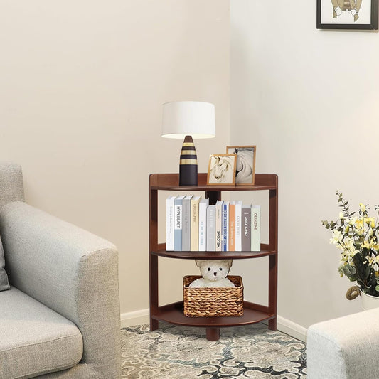 3 Tier Bamboo Corner Bookshelf, Mid Century Modern Corner Shelf, 24" Short Corner Bookcase with Storage Display Rack for Living Room, Bedroom, Home Office